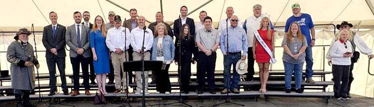 City and county elected officials gathered with community leaders to officially kick off the 47th Annual Olustee Festival in Lake City this last weekend. Left is Tony Buzzella, commanding general of the Blue-Grey Army and host/emcee of the event. -SVT Photos by Tami Stevenson