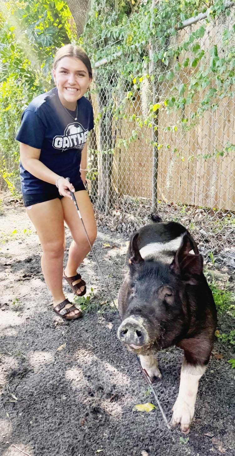 Shelby Langford working with one of her hogs. -Photo courtesy of Shelby Langford