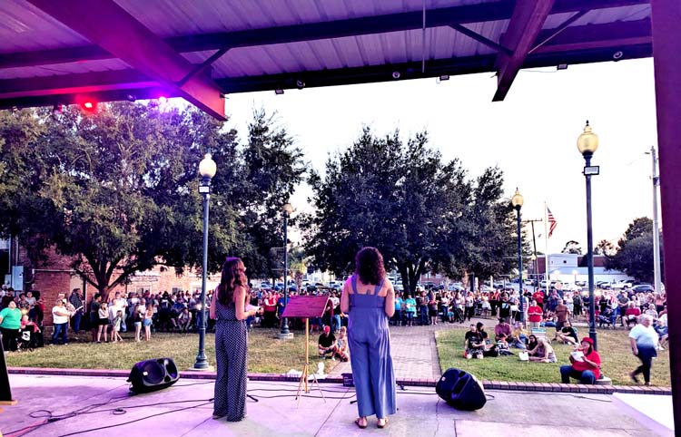 Live Oak - Stephanie Linton, left, and Amanda Jordan sing “It Is Well With My Soul,” to a crowd of more than 250 Suwannee County mourners. -Photo by Lisa Keep