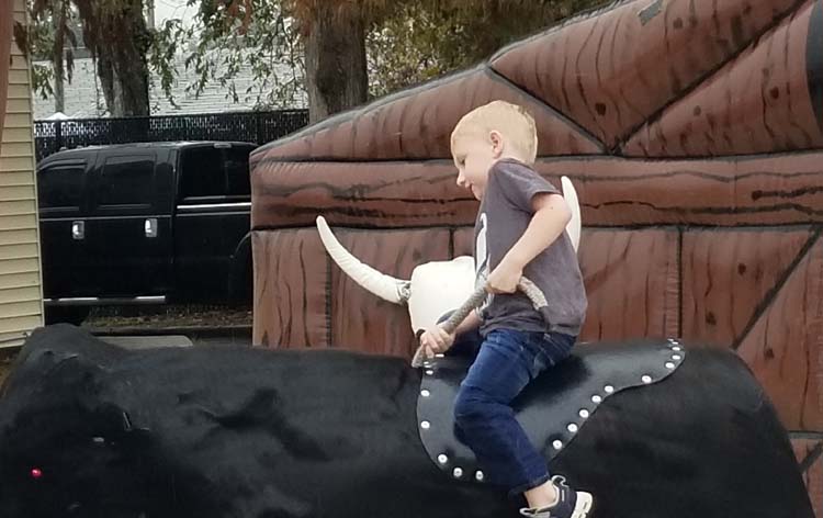 Four-year-old Dawson Beck riding the bull during Christmas on the Square. Dawson was visiting with his grandfather, Brian Beck, from Camilla Georgia. -SVT Photo