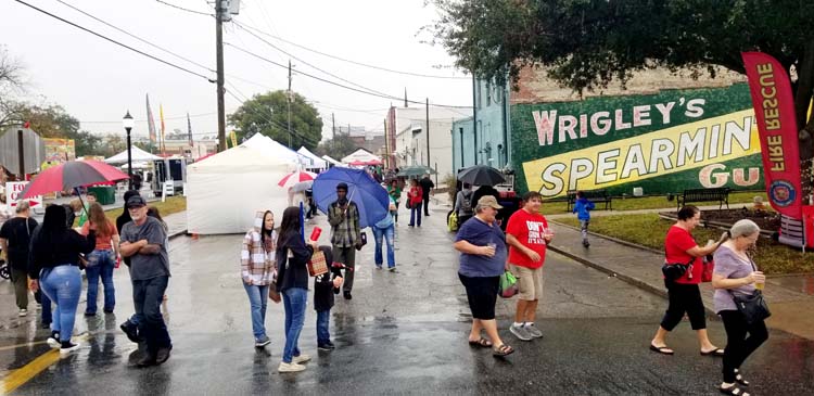Hearty Saturday shoppers brandishing umbrellas at Christmas on the Square in Live Oak. -SVT Photo